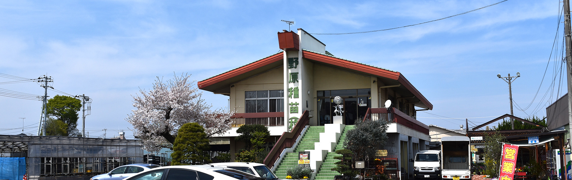 野原種苗のホームページへようこそ ◇ 野原種苗では四季折々の草花・野菜の種や苗を豊富に取り揃えて皆様のお越しをお待ちしています。暮らしに菜園を。四季折々の花苗は野原種苗がご用意いたします。 What's New 新食感トマトの愛称が「プヨ姫」になりました 2023年5月22日2023年5月22日 好評いただいております「新食感トマト」ですが、この度「プヨ姫… 新食感トマトが農業新聞に掲載されました 2022年11月22日2023年5月22日 11月13日付けの日本農業新聞の裏一面に、新食感トマトの記事… 緑のカーテン 2022年8月22日2023年5月22日 本社屋2階の南西向きのベランダに、ゴーヤで「緑のカーテン」を… 講習会のお知らせ 寄せ植え講習会のお知らせ 2023年5月22日 ノハラ園芸センターでは、定期的に寄せ植え講習会を開催しており… Q&A Q:ネギに赤サビ病が発生しています。 2023年5月22日 A:多湿状態であることと発病適温が15~20度Cと割りに低い… 商品 小松菜-なっちゃん 小袋 2023年5月22日 暑さ、寒さに強く夏にはしっかり育ち、秋には緩やかに育ち、病気… 小松菜-あやか 小袋 2023年5月22日2023年5月22日 冬の寒さに強く、葉にツヤがあり、きれいな小松菜です。油いため… アクセス <野原種苗株式会社>■営業時間 9:00~17:30■定休日:土日祝日 ※正月・お盆にもお休みを いただ いております。<ノハラ園芸センター>◆営業時間 9:00~17:30◆定休日:水曜日 ※野原種苗㈱は、水曜日は 営業しております※駐車場:40台[お車なら]・東北自動車道久喜インター から車で5分・JR宇都宮線久喜駅から車で 5分です・JR宇都宮線東鷲宮駅から車 で4分です